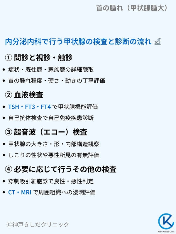 神戸きしだクリニックの内分泌内科では、首の腫れや甲状腺腫大に関する専門的な診察を行っております。