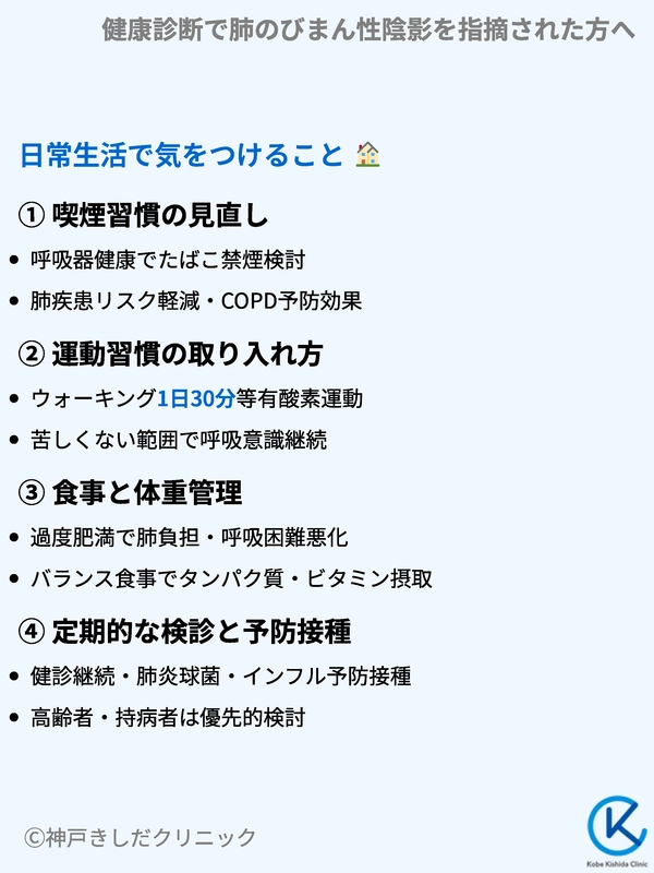 - 生活習慣の見直しで肺の負担を減らす