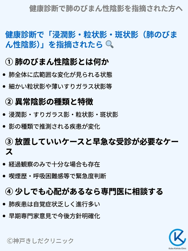 健康診断で「浸潤影・粒状影・斑状影(肺のびまん性陰影)」を指摘されたら