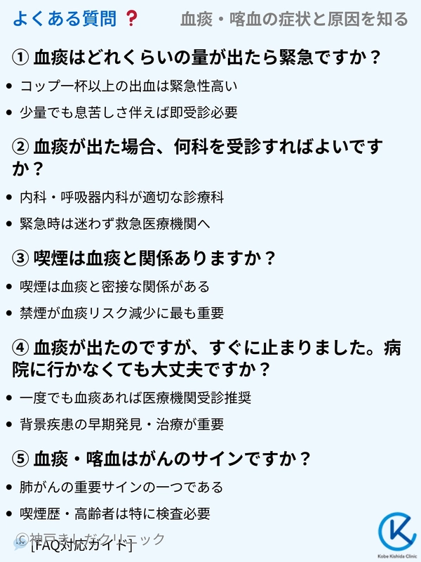血痰や喀血について、患者さんが抱きがちな疑問に答えます。