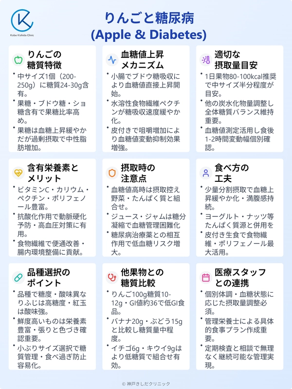 本記事では糖尿病患者さんがりんごを摂取するうえで注意したいポイントや適切な摂取量について詳しく解説します。