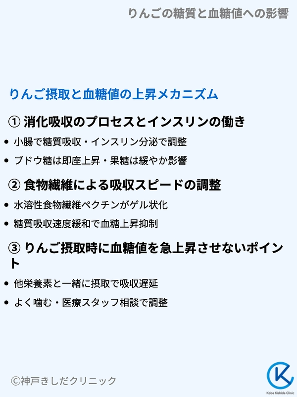 ここでは、りんごを食べるときに起こる血糖値上昇のプロセスと対処法について解説します。