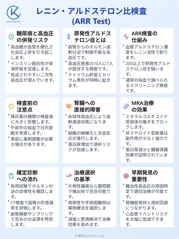 ARR検査は、血液中のホルモンバランスの乱れを数値化することで、本態性高血圧と二次性高血圧を鑑別する最も有効なスクリーニング手法です。