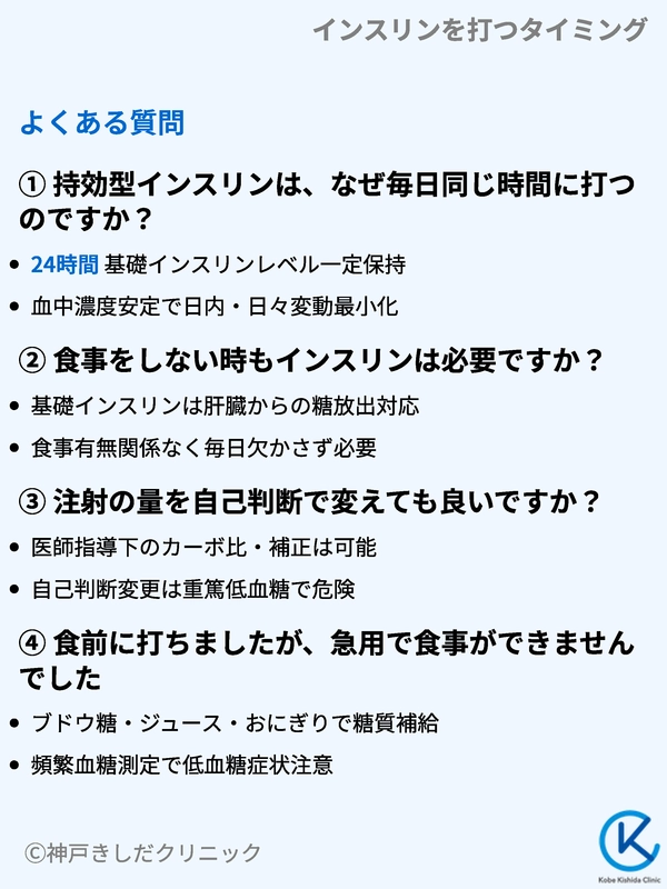 インスリンのタイミングについて、患者さんからよくいただくご質問にお答えします。
