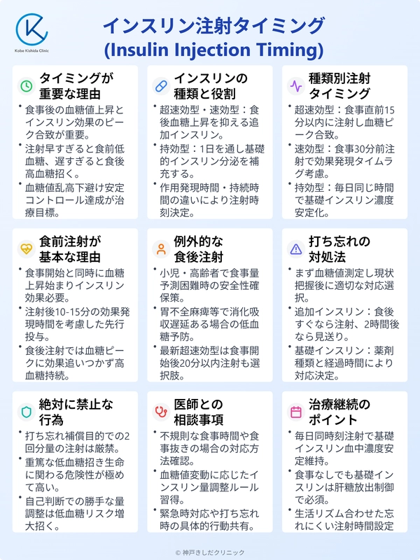 インスリン治療において、注射のタイミングは血糖コントロールの質を左右する非常に重要な要素です。