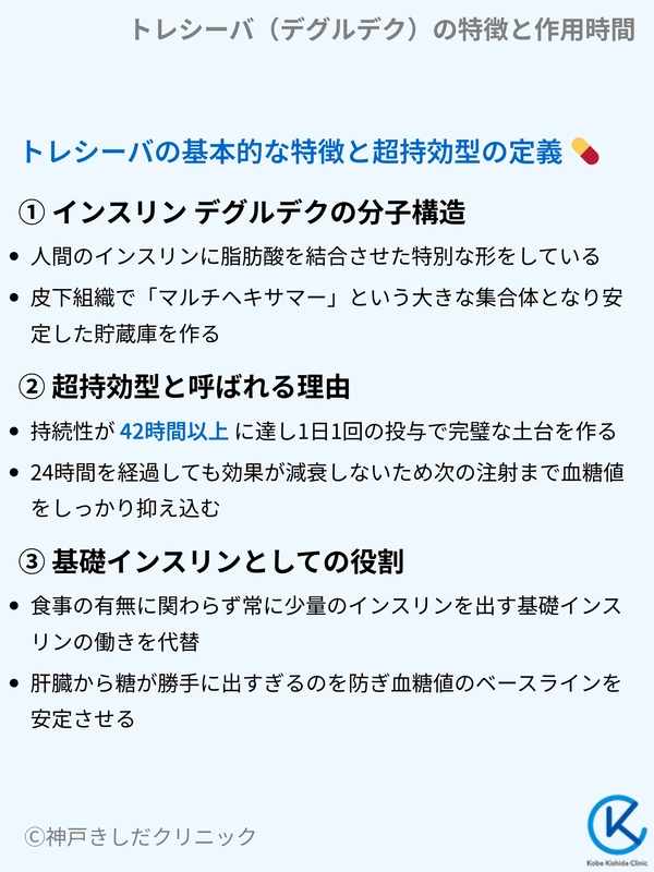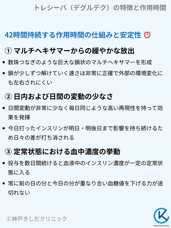 トレシーバ(デグルデク)は、42時間以上の作用時間を持つ超持効型インスリンです。