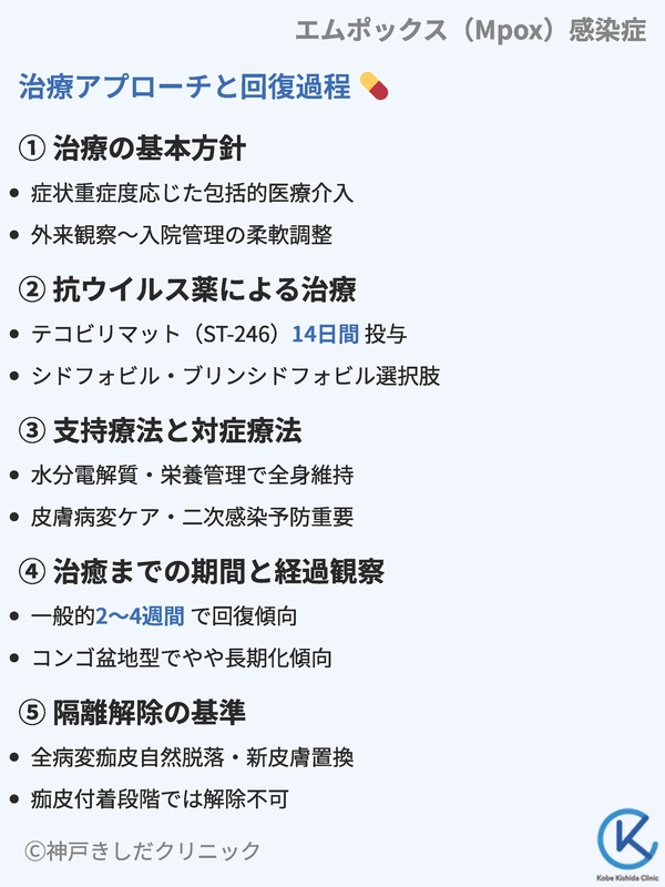 エムポックスの治療には抗ウイルス薬テコビリマットを中心とした薬物療法が実施されます。