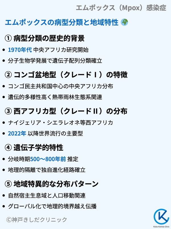 エムポックスの病型分類は1970年代から継続的な研究によって確立されました。