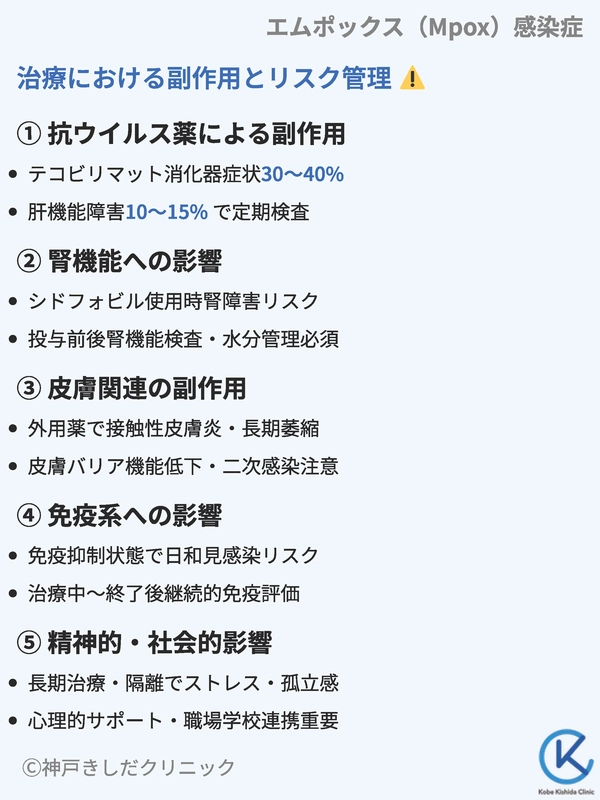 治療に伴う免疫系への影響は特に注意が必要な要素です。
