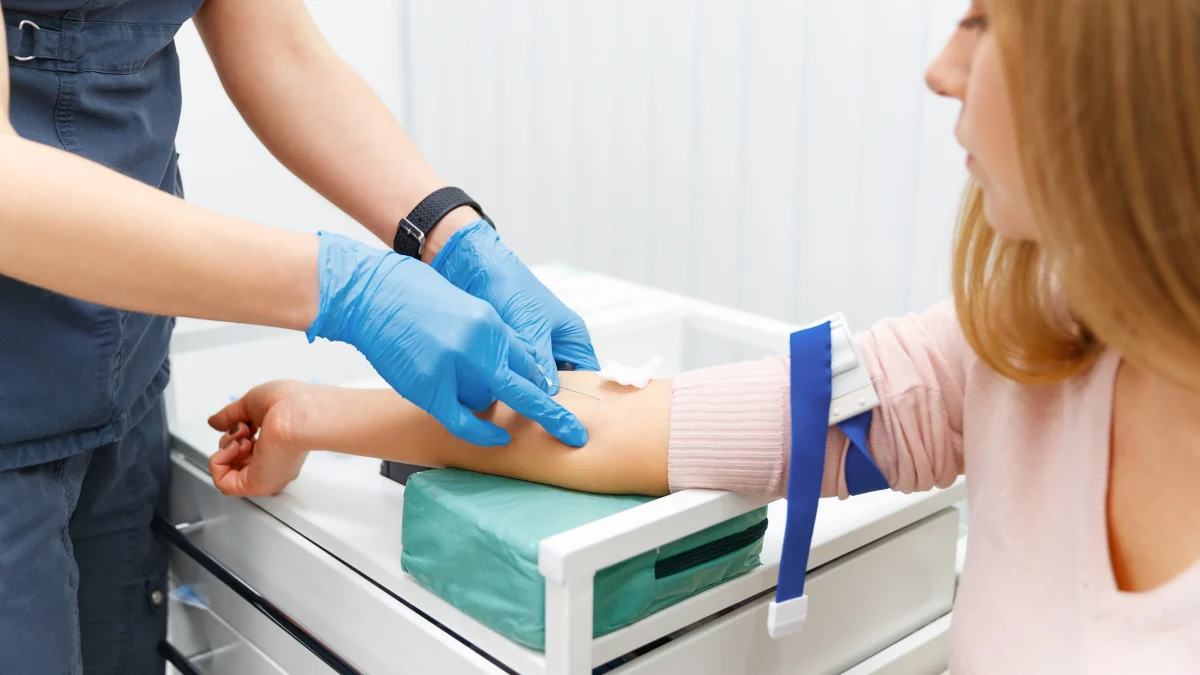 医師の簡単な問診の後、採血を行います。検査項目が複数あっても1回の採血で済みます。採血自体は数分で終わり、受付からお会計まで約15分程度です。