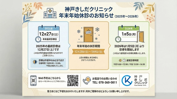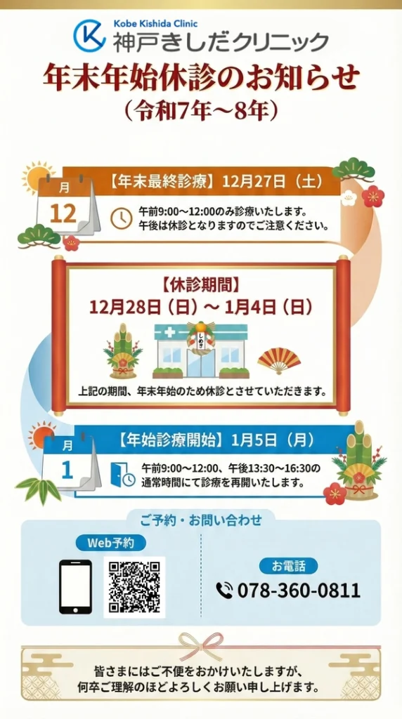 下記の通り、年末年始の診療スケジュールをご案内いたします。