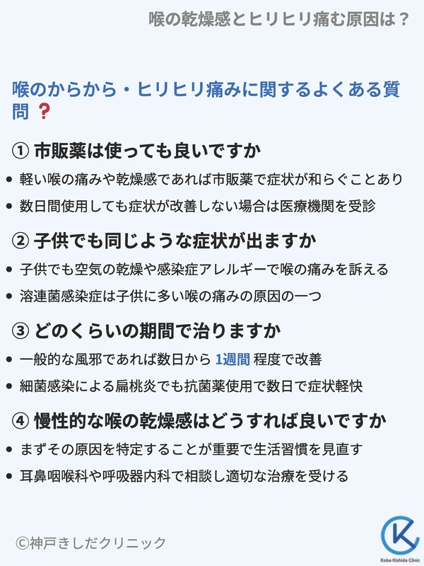 喉のからから・ヒリヒリ痛みに関するよくある質問