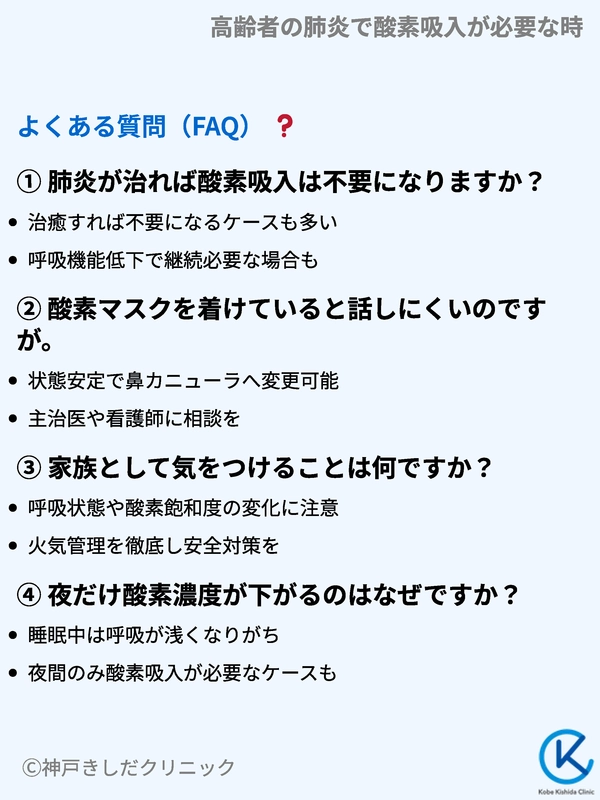 最後に高齢者の肺炎と酸素吸入に関してよくある質問にお答えします。