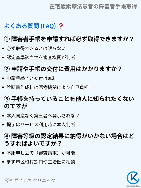 身体障害者手帳は在宅酸素療法を必要とする患者さんの生活を支えるための一つの大切な制度です。正しい情報を理解して適切に活用することで、より安心して療養生活を送ることができます。