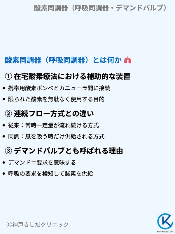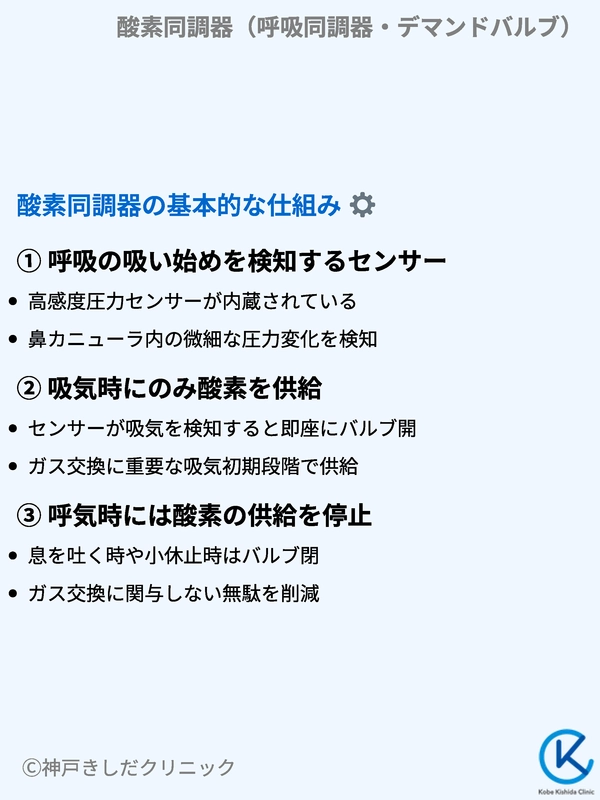 酸素同調器は高度なセンサー技術を利用して、患者さんの呼吸サイクルを検知し、酸素供給を精密に制御します。