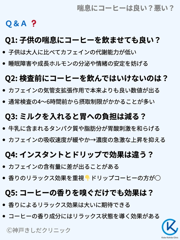 - Q子供の喘息にコーヒーを飲ませても良いですか?