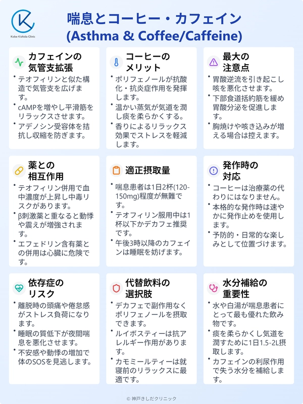 これはカフェインの気管支拡張作用と、ポリフェノールの抗酸化・抗炎症作用が複合的に働いている結果と考えられます。