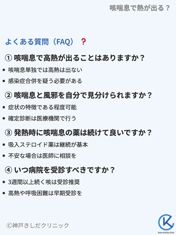 発熱を伴う咳喘息に関して、患者さんからよく寄せられる質問とその回答をまとめました。
