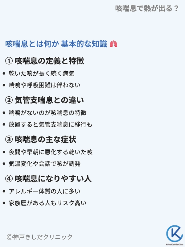 この記事では咳喘息で熱が出るケース、風邪との症状の違い、正しい見分け方、そして医療機関での検査や治療法について詳しく解説します。