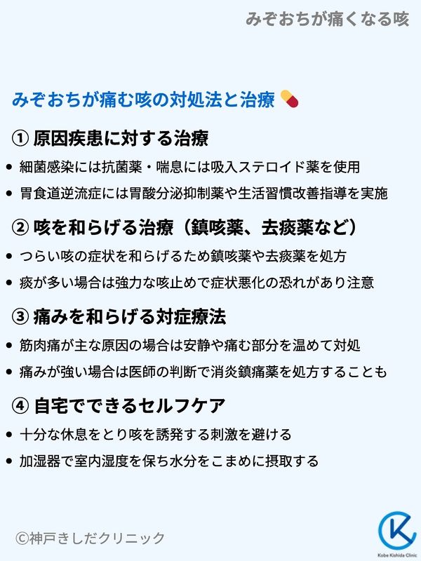 咳でみぞおちが痛む場合の治療は原因となっている病気に対する治療が基本です。