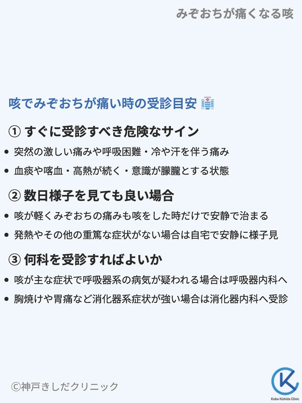 「咳のしすぎでみぞおちが痛い」と感じたとき、どのタイミングで医療機関を受診すべきか迷うことがあるかもしれません。