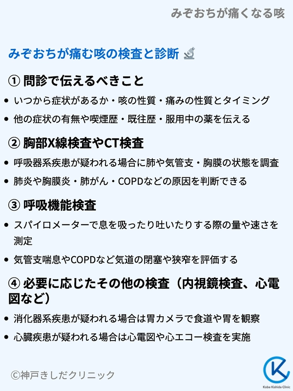 みぞおちが痛む咳の際に考慮される主な検査