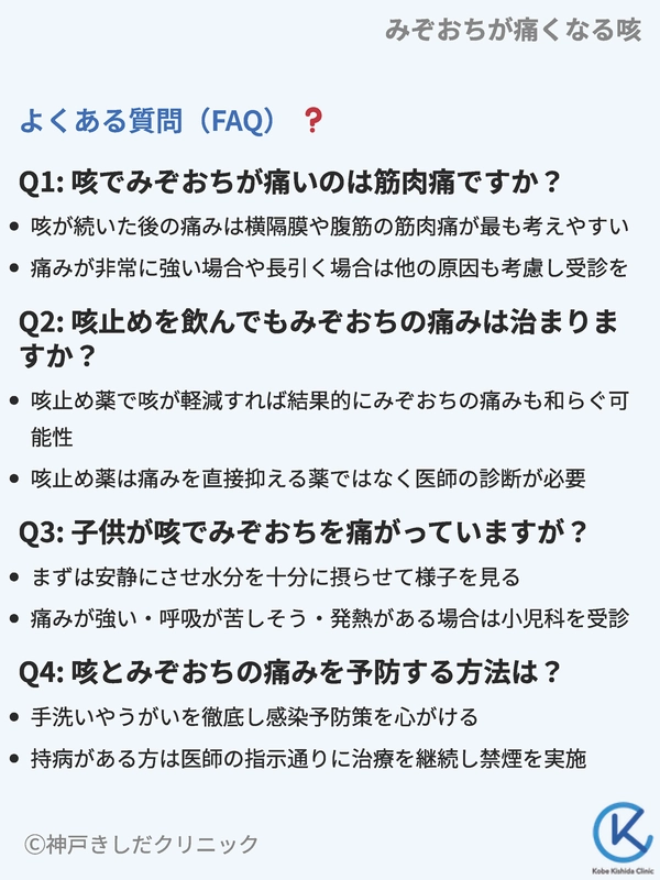 咳とみぞおちの痛みに関して、患者さんからよく寄せられる質問とその回答をまとめました。