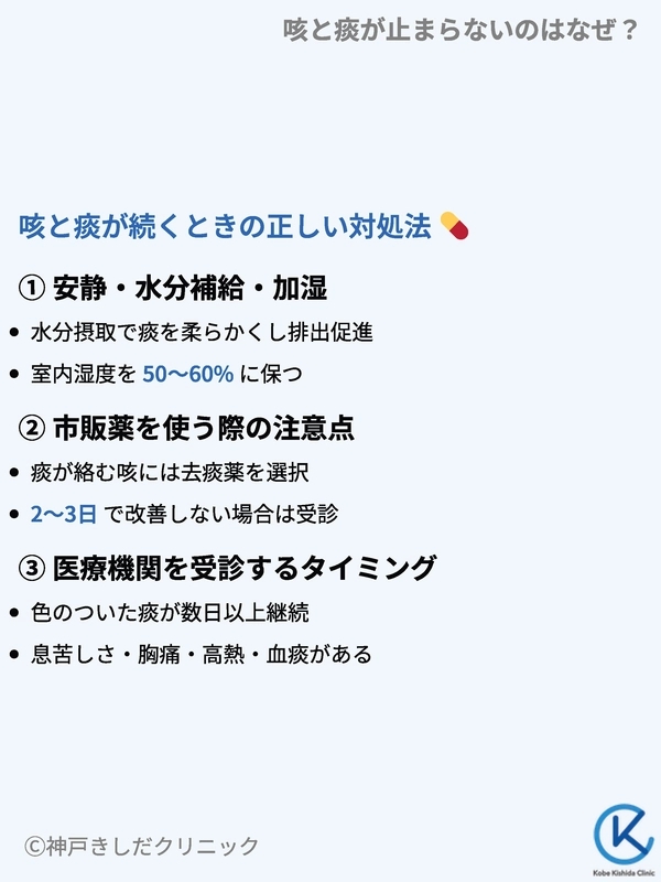 つらい咳と痰の症状を和らげ、悪化を防ぐための基本的な対処法を知っておきましょう。