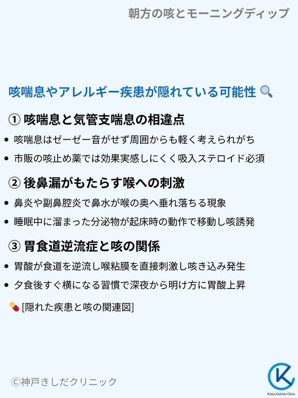 身体の防衛能力が一時的に手薄になるタイミングを突くように、潜んでいた炎症が勢いを増し、朝方の激しい咳き込みを誘発します。