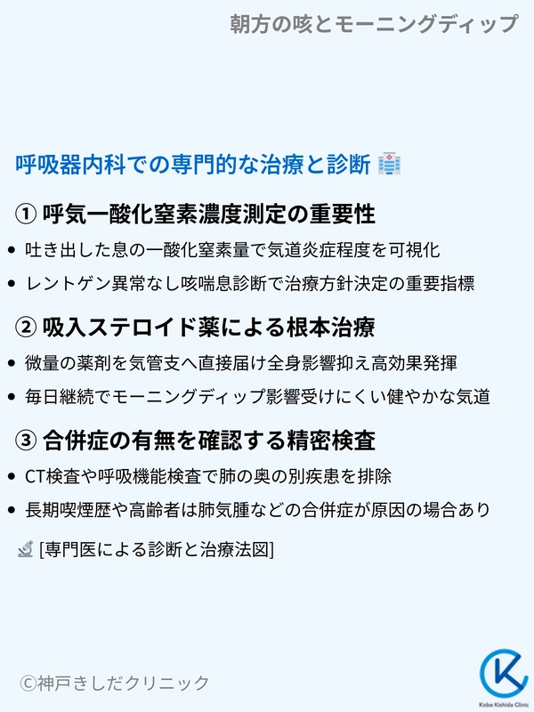 自力での対策で改善が見られない朝方の咳に対しては、呼吸器内科での専門的なアプローチが最も確実な解決策となります。