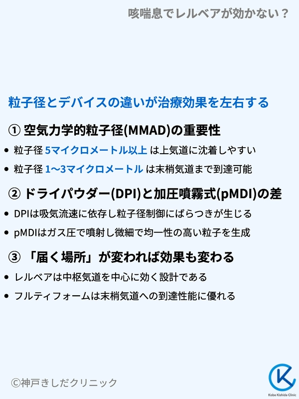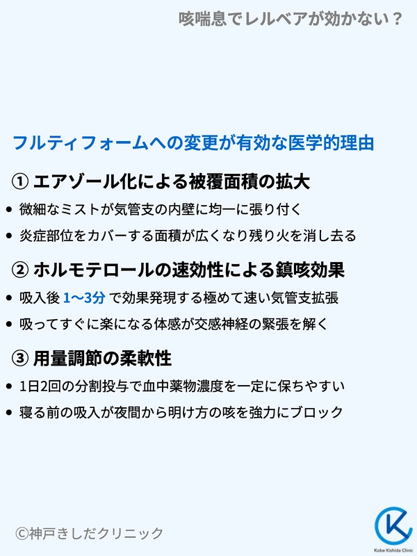 レルベアからフルティフォームへ変更することで咳が改善する背景には、単なる相性の問題を超えた薬理学的および物理的な理由が存在します。