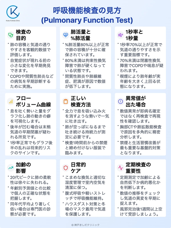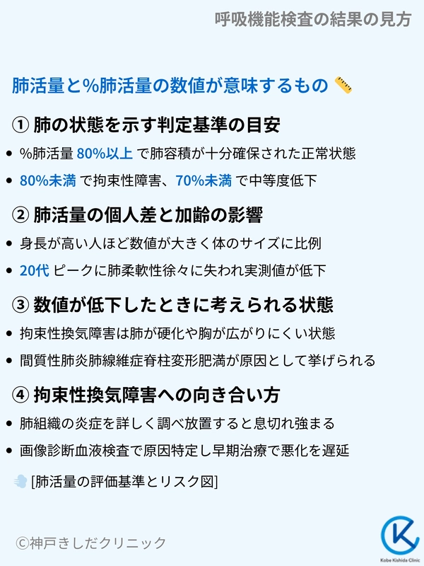 健康診断のデータに不安を感じている方や、数値を詳しく知りたい方に向けて、専門的な視点から肺の状態を読み解くポイントを丁寧に解説します。