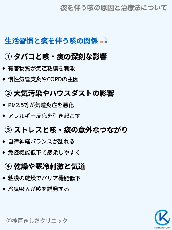 痰を伴う咳は日々の生活習慣と深く関わっていることがあります。