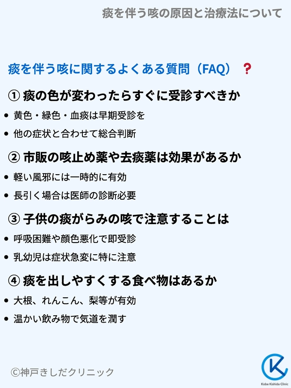 痰を伴う咳について、患者さんからよく寄せられる質問とその回答をまとめました。