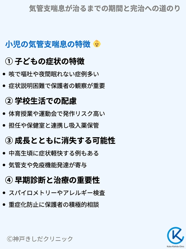 小児の気管支喘息は成長とともに症状が変わりやすく、大人とは異なる視点でのケアが必要です。