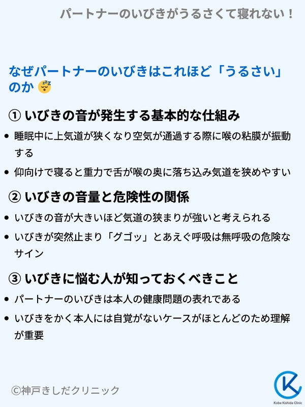 単なる「うるさい音」と片付けず、なぜいびきが起こるのかを理解し、適切に対処することが重要です。