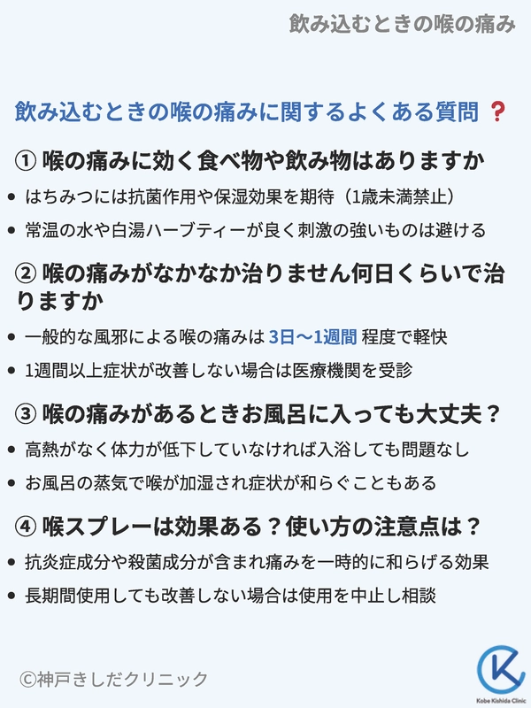 飲み込むときの喉の痛みに関するよくある質問