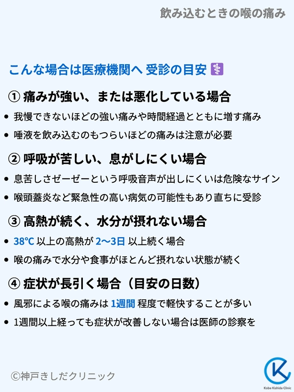 こんな場合は医療機関へ 飲み込むときの喉の痛み受診の目安